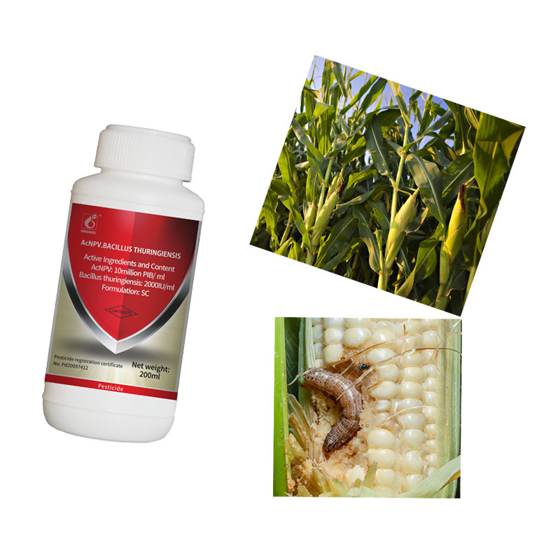 Setelah serangga makan pestisida, Bacillus thuringiensis berperan pertama dalam sel-sel usus tengah serangga, mengurangi sistem kekebalan serangga, sehingga lebih mudah bagi serangga untuk terinfeksi dengan AcNPV.AcNPV kemudian memasuki tubuh dan membawa salinan massal dan reproduksi, dan segera menyebar dengan cepat ke setiap bagian tubuh hama. hama akan kehilangan kemampuan untuk membahayakan tanaman. akhirnya, tubuh akan membusuk dan menyebabkan kematian.AcNPV terus menginfeksi hama yang sehat dan generasi berikutnya melalui cairan tubuh dan kotoran serangga mati, sama seperti wabah cacing, dengan cara ini, itu akan mengendalikan hama dalam waktu yang lama.